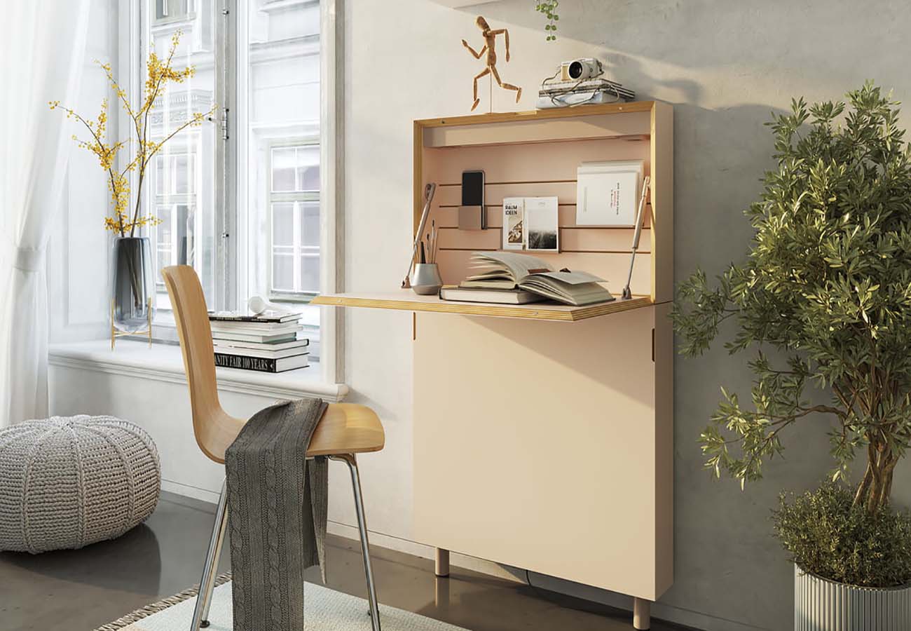 Als ich den Flatmate zum ersten Mal bei einer Freundin gesehen habe, dachte ich, er sei ein Kunstobjekt an der Wand. Erst als sie die Front herunterklappte und ein voll ausgestatteter Arbeitsplatz zum Vorschein kam, war ich sprachlos. Das ist kein Schreibtisch – das ist ein verstecktes Atelier.