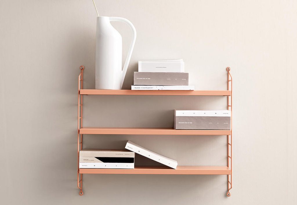 String Pocket ist für mich das „LEGO der Aufbewahrung“. Ich habe zwei Regale über meinem Schreibtisch montiert – eines für Fachbücher und Arbeitsunterlagen, das andere für Deko, Pflanzen und Duftkerzen.